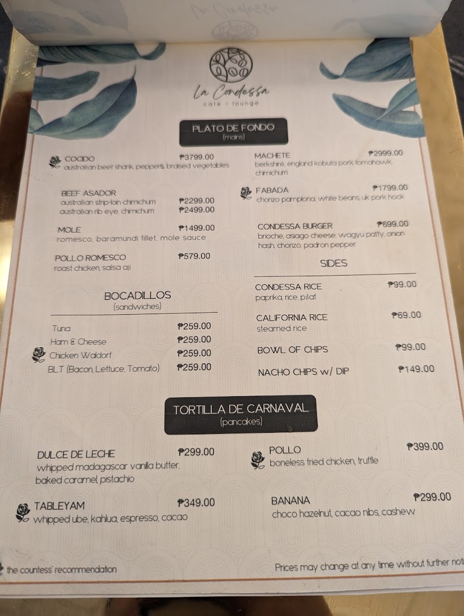 La Condessa Cafe and Lounge Menu